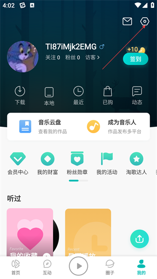 2、点击【我的】进入个人页面,再点击设置图标,可进入设置界面管理账号相关设置。