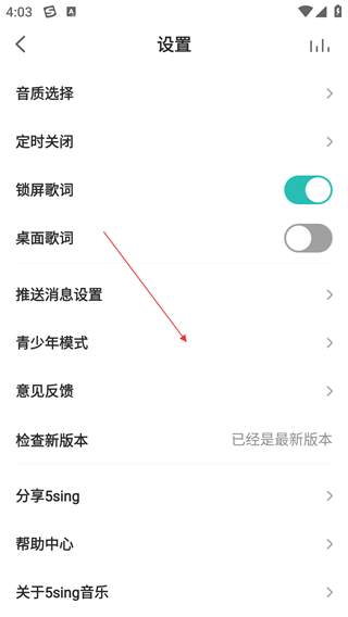 3、进入设置界面后,找到【青少年模式】选项,点击可进入青少年模式设置界面。