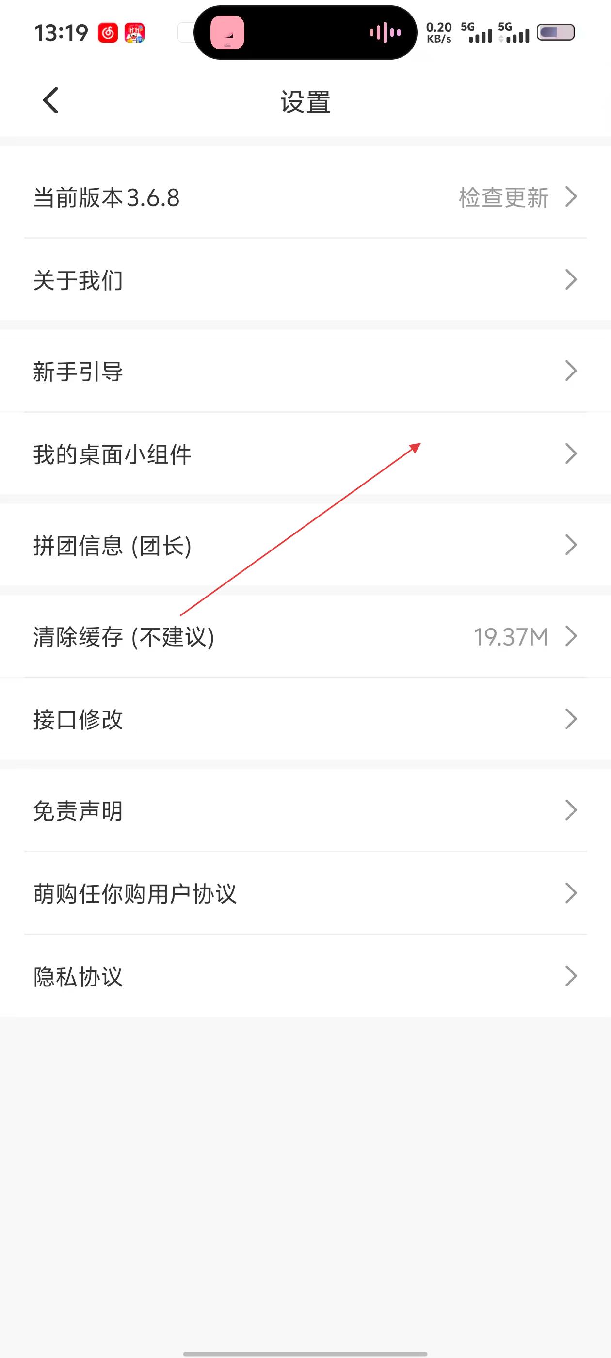 3、在设置界面,点击【我的桌面小组件】,进入桌面小组件设置页面,可对任你购小助手和我的搜索偏好进行设置。