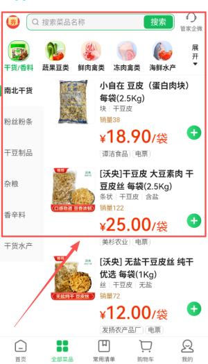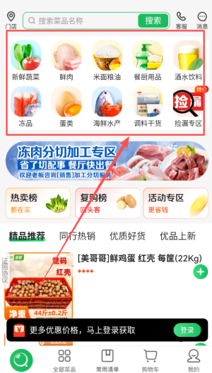 2、进入主界面后浏览各种农产品类别,根据自己的需求选择合适的食材,筛选出最符合自己口味的商品。