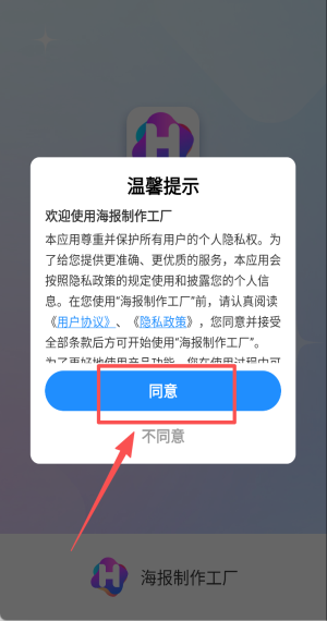 1、打开海报制作工厂,先阅读并点击同意用户协议与隐私政策。