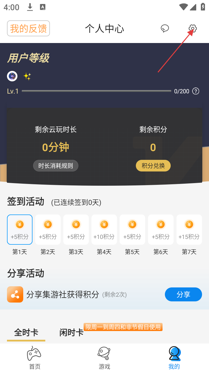 1、在集游社首页,点击底部【我的】选项,可进入个人中心页面。