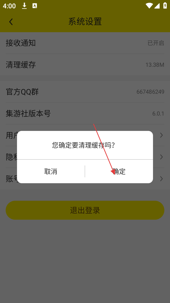 4、在提示框中,点击【确定】按钮,即可清理集游社的缓存数据,释放手机存储空间。