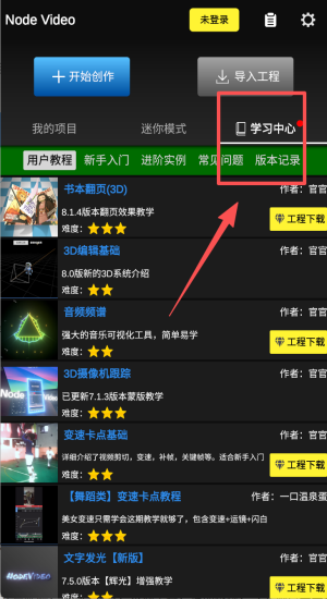 4、打开学习中心下载书本翻页3D摄像机跟踪工程跟随难度教程实操。