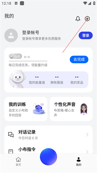 1、下载打开小布助手app最新版,在发现页中点击右上角的设置;