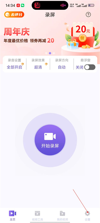 2、在【设置】页面,包含【录屏设置】【视频设置】等功能选项,还支持开启【主播模式】等个性化配置。