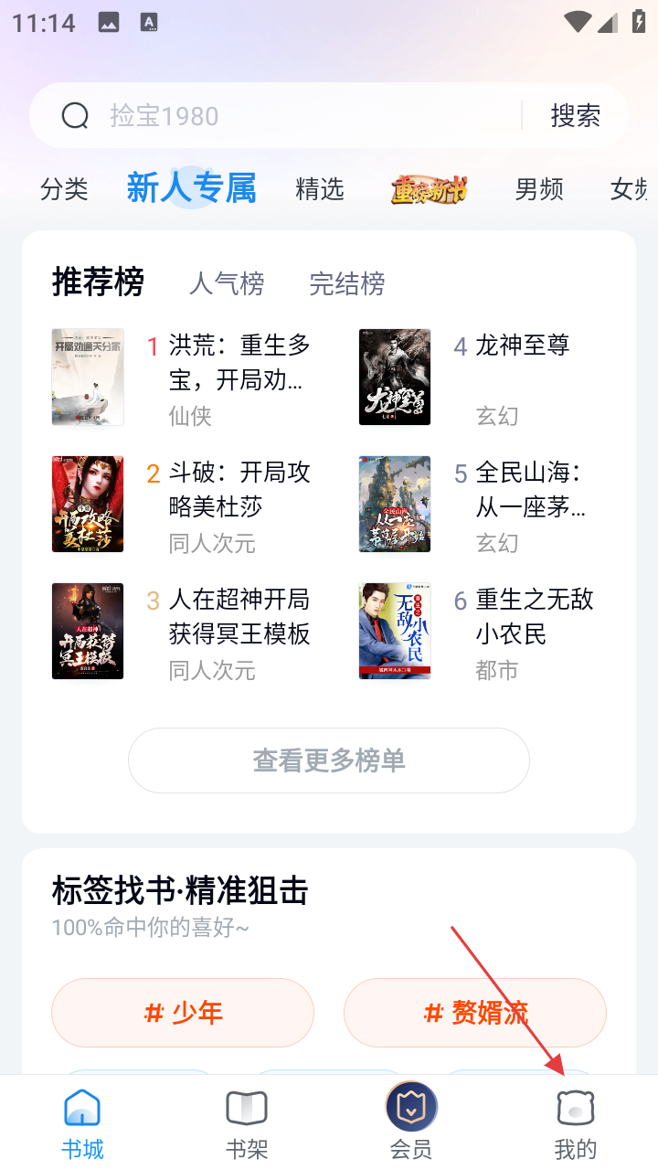 1、打开米读小说APP,进入书城页面后,点击右下角【我的】选项。
