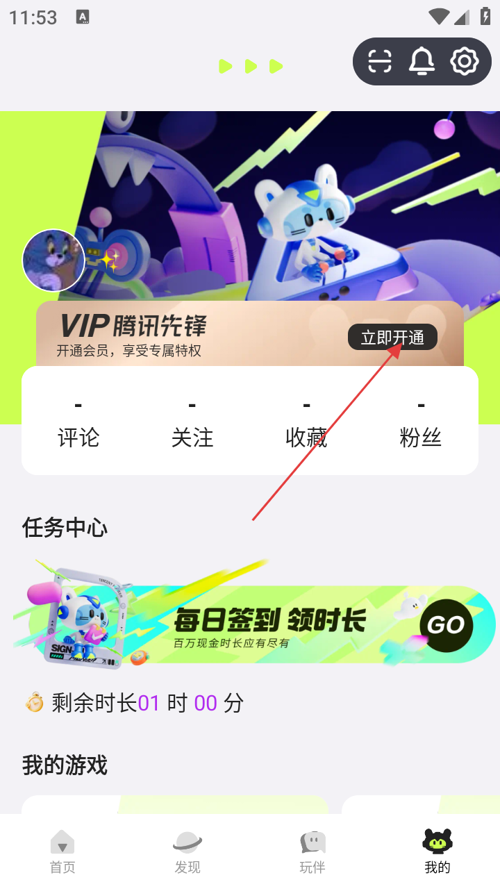 2、进入个人中心后,点击【立即开通】按钮,可进入会员开通页面。