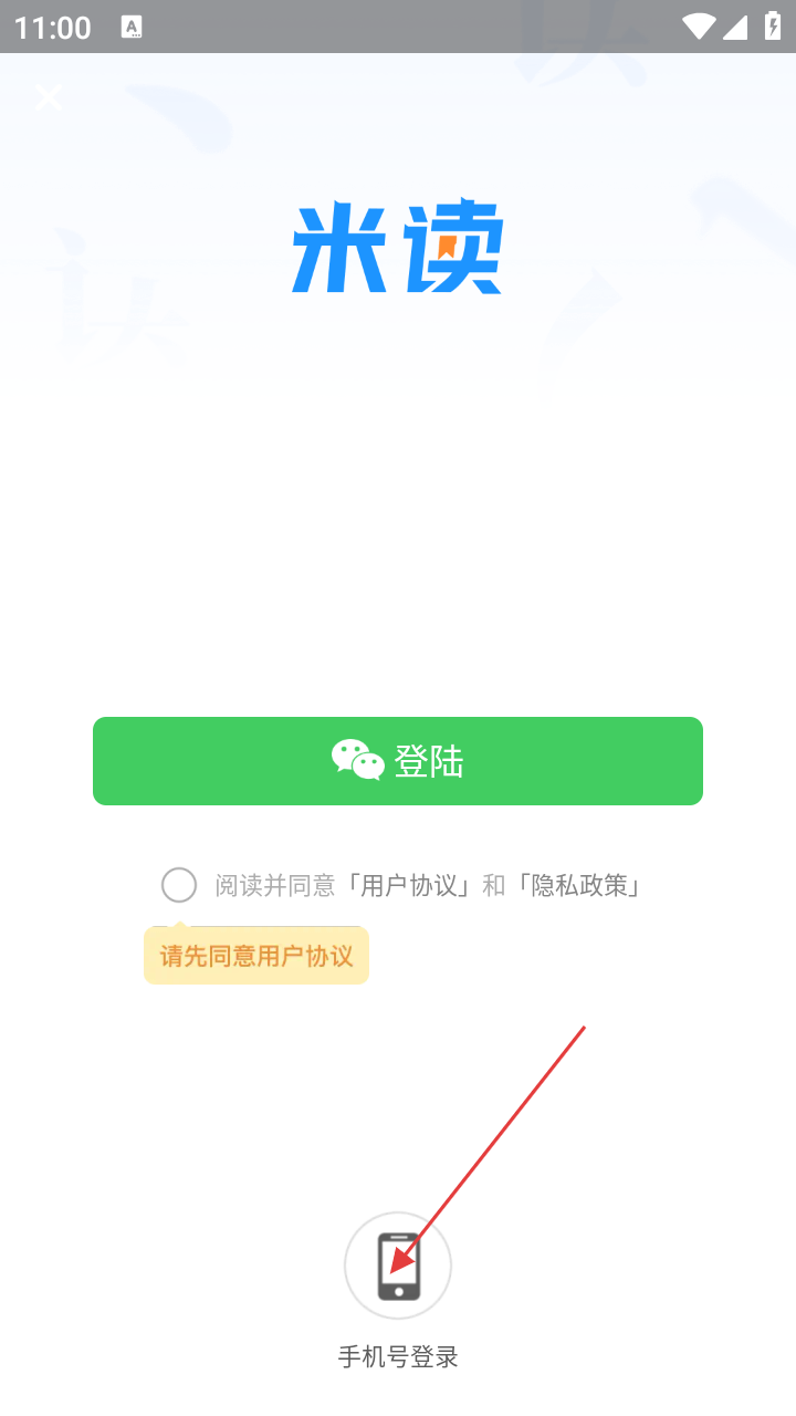 3、在登录页面,若选择手机号登录方式,点击下方【手机号登录】图标。