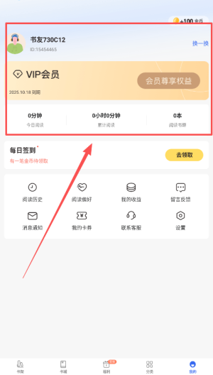 5、点击我的选项可以查看自己的信息,统计每天的阅读时长以及累计阅读时长。
