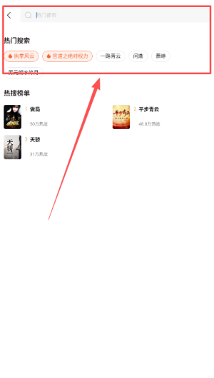 3、在跳出的搜索栏输入想要看的小说,在随后页面点击该小说即可。