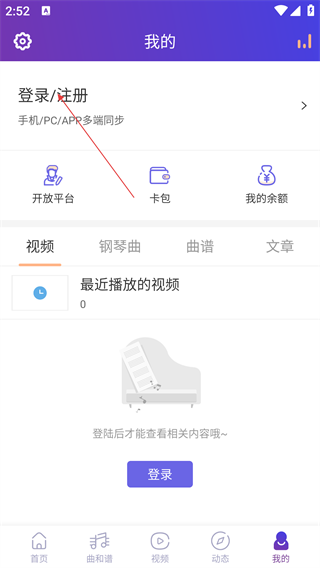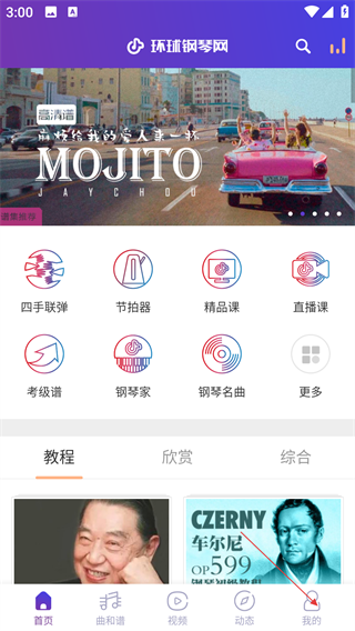 1、进入环球钢琴网APP后,点击右下角【我的】,进入个人中心页。