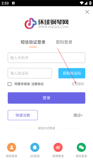 3、在登录/注册选择页面点击【忘记密码】,进入找回密码页面。