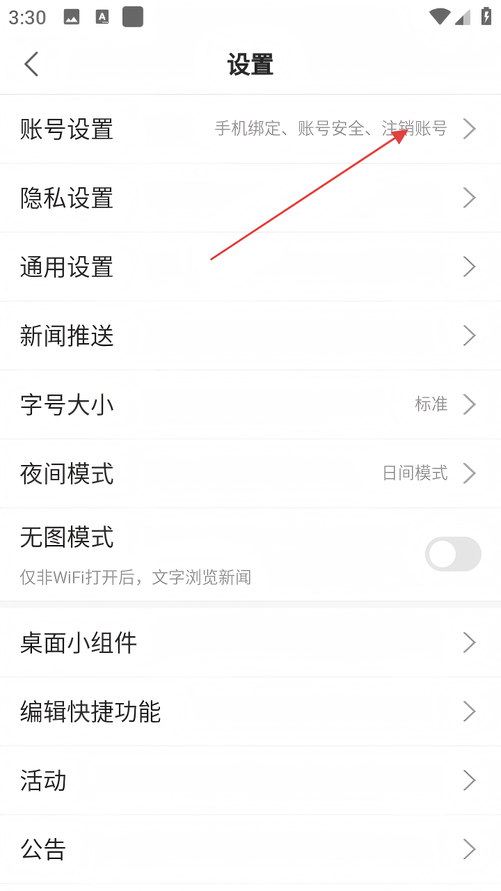 3、进入设置页面后,点击【账号设置】。