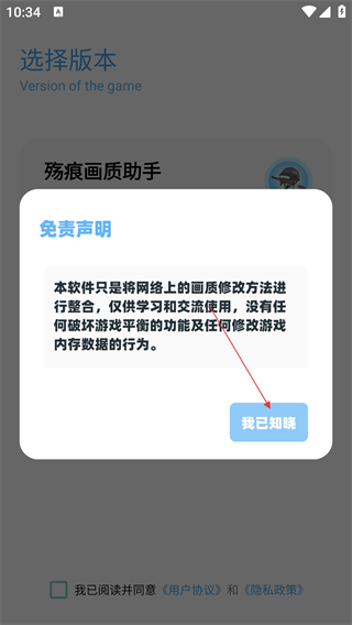 3、进入选择版本页面后,勾选“我已阅读并同意《用户协议》和《隐私政策》”,完成协议确认并进入应用。