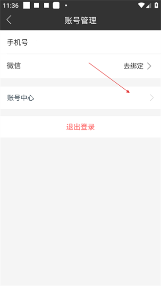 3、在【账号管理】页面,可绑定微信,也能进入【账号中心】管理账号相关信息,还可执行退出登录操作。