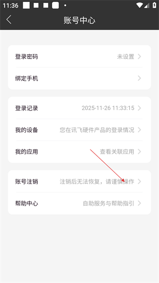 4、在【账号中心】点击【账号注销】即可进行账号注销等操作。