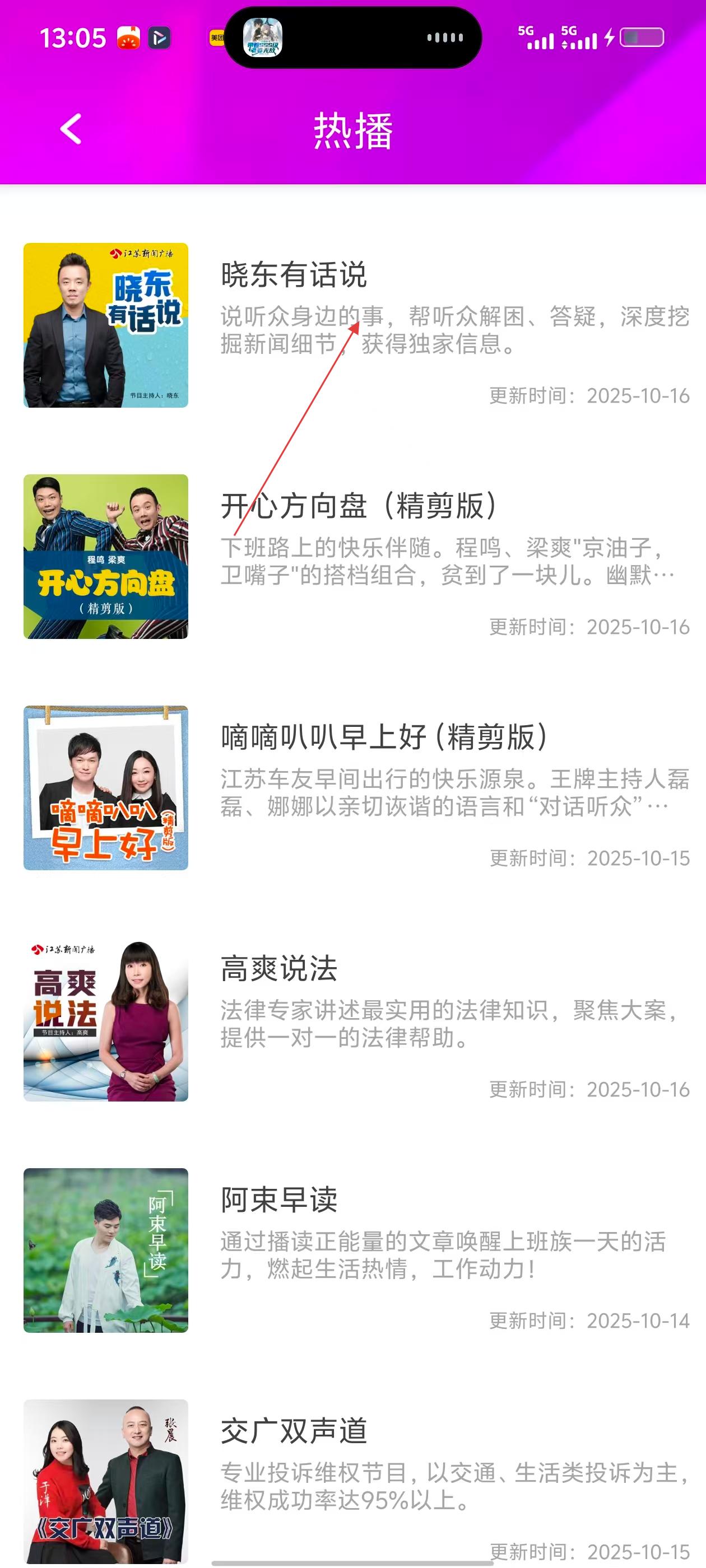 3、进入热播音频列表页,可看到多款热播音频节目,若对某款节目感兴趣,点击节目名称进入详情页。