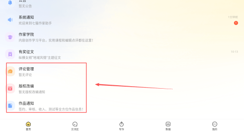 3、在主页查看综合数据,包括作品的阅读量、收益情况等,这些信息将帮助作者调整创作方向,提高作品质量。