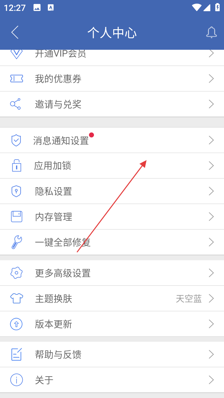 2、进入个人中心页面,若要进行应用加锁设置,点击【应用加锁】选项。