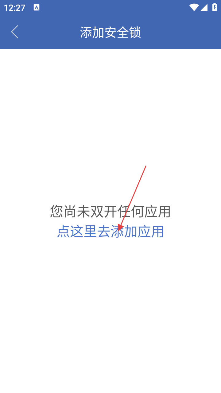 3、进入添加安全锁页面,若要添加双开应用,点击【点这里去添加应用】选项。