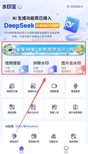 2、接下来选择去水印功能,系统会自动识别出视频中的水印区域,用户只需简单勾选并确认,省时省力。
