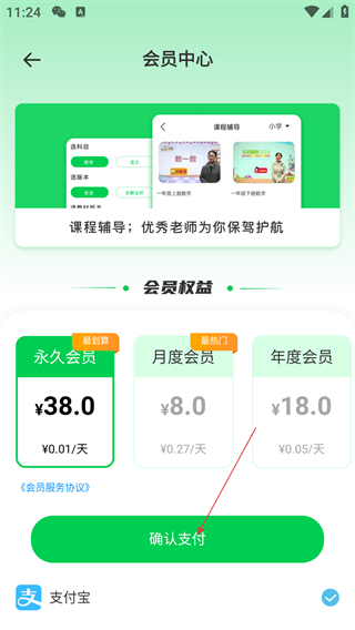 4、在会员中心页面,选择对应的会员套餐,确认支付方式后点击【确认支付】按钮,完成支付即可开通VIP会员。