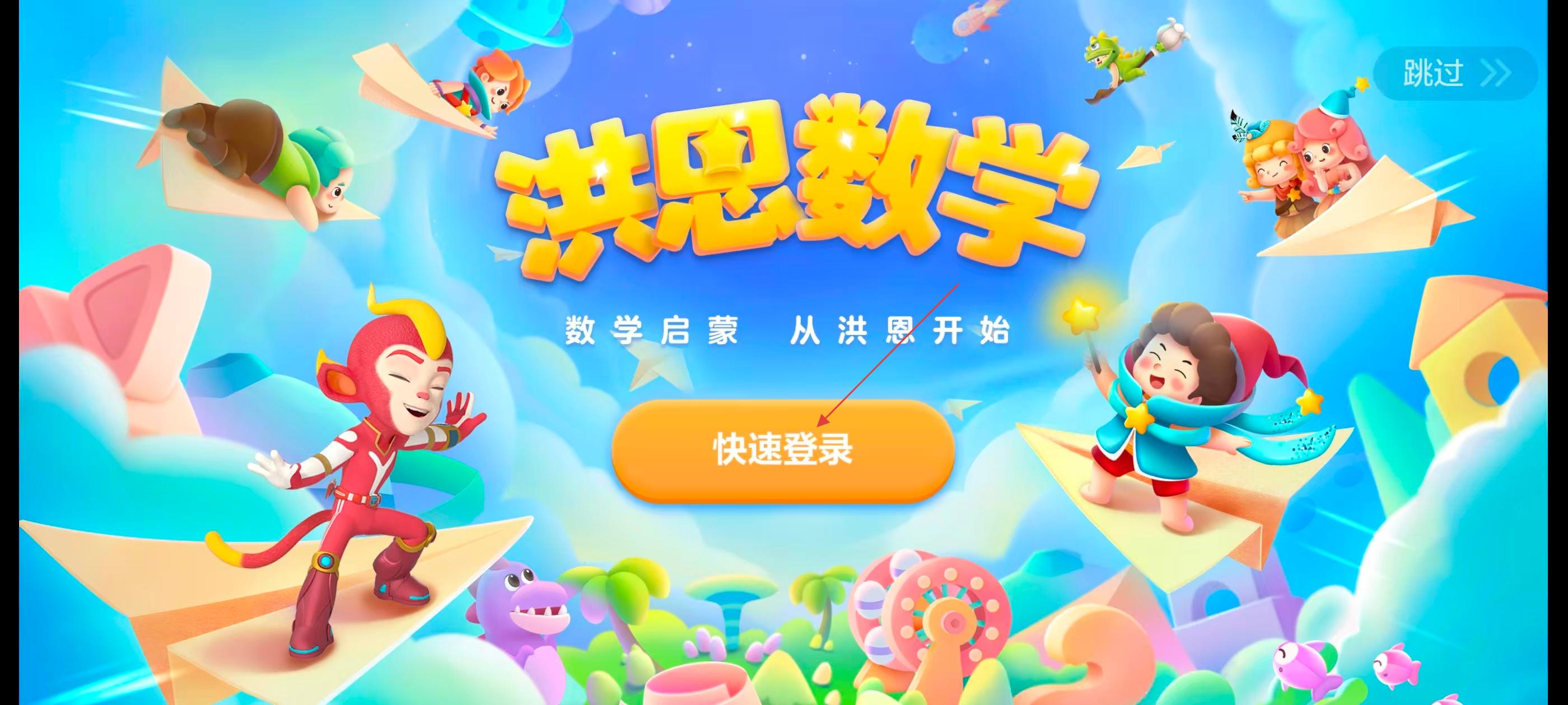 2、进入洪恩数学APP后,点击【快速登录】可进入登录注册界面,界面有可爱的卡通形象,营造友好的使用氛围。