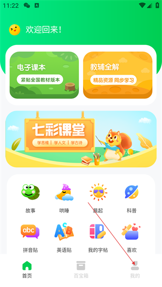 2、在我的首页中,我们可以看到非常多功能,比如故事、成长动画、拼音贴等。