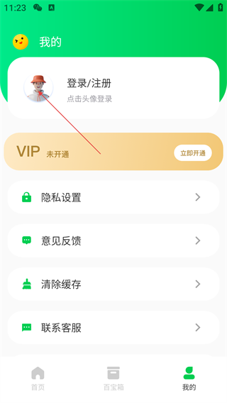 2、在个人中心页面,点击“登录/注册”区域的头像,进入登录界面。