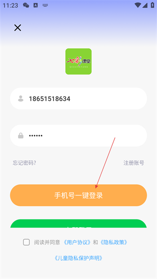 4、勾选“阅读并同意《用户协议》和《隐私政策》”后,点击【手机号一键登录】按钮,完成账号登录。