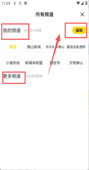 2、点击“更多频道”或“编辑”按钮,管理频道订阅。