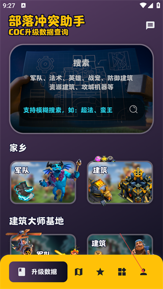 1、在部落冲突助手首页,点击底部导航栏的【我的】,进入个人中心页面。