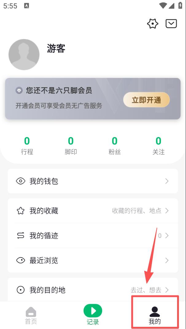 3、点击底部 “我的”,可进入个人页面,查看行程、脚印等个人信息,还能管理收藏与浏览记录。