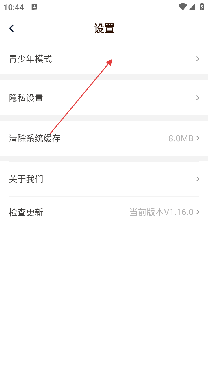 3、进入【设置】页面,有【青少年模式】【隐私设置】等选项,若要开启青少年模式,点击【青少年模式】选项。