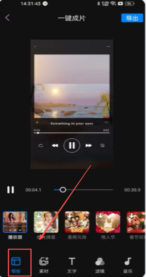 2、在模板页选中“情人节”主题,添加情侣素材后点右下角“导出”。