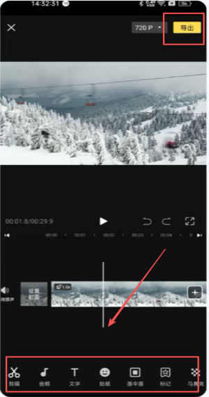 3、在导出界面选720P分辨率,确认时长无误后再次点击“导出”。