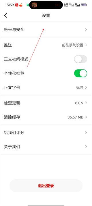 2、在【我的】页面点击右上角【设置】图标,进入设置界面,可管理账号安全、个性化推荐等配置项。