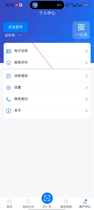 2、在个人中心页面,点击【点击登录】按钮,进入登录界面。