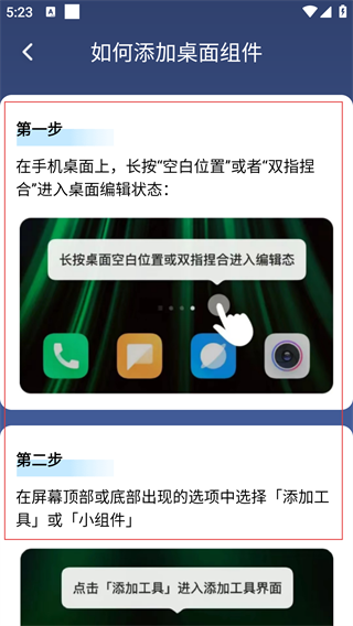 3、在个人中心页面,点击【立即添加】按钮,进入“如何添加桌面组件”教程界面。