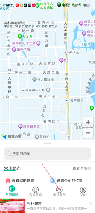 2、进入App主界面,点击底部导航栏的【出行天气】选项,切换至天气查询页面。