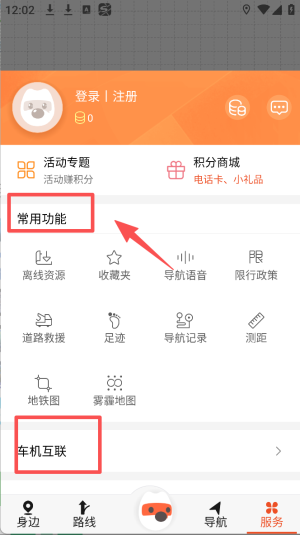4、访问常用功能,点击“常用功能”中的“车机互联”,连接记录仪。