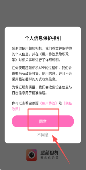 1、阅读个人信息指引后点击“同意”,授权设备信息用于精准推送与日志记录。