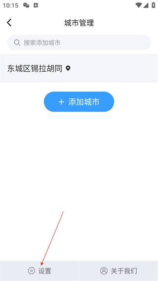 3、在城市管理页面,点击底部的【设置】选项,进入设置界面。