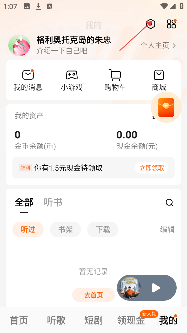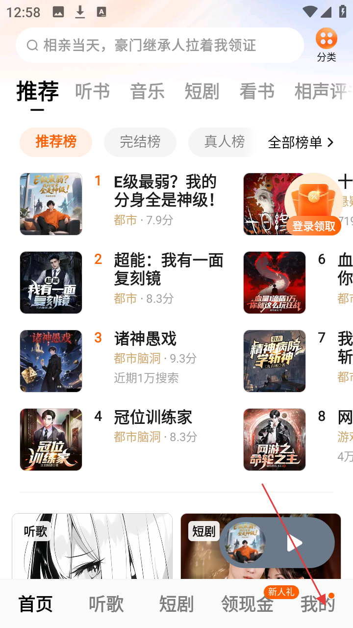 1、在番茄畅听首页,可浏览推荐内容,若要进入个人相关页面,点击右下角【我的】。