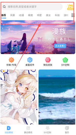 2、接下来浏览应用中的壁纸分类,选择自己喜欢的主题,无论是风景还是动漫,让每位用户都能找到适合自己的壁纸。
