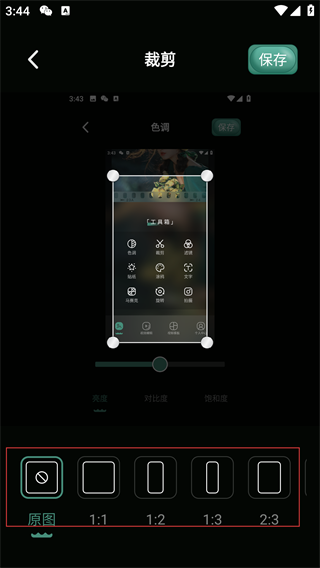 3、在裁剪界面,可通过拖动边框调整裁剪范围,或选择底部预设比例快速设置画面尺寸。