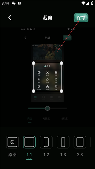 4、调整好裁剪区域后,点击右上角【保存】按钮,即可完成图片裁剪并保存修改后的内容。