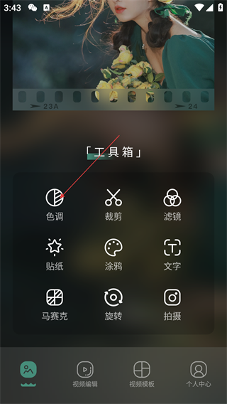 1、进入图片编辑工具的工具箱界面,选择【色调】功能,进入色调调整页面。