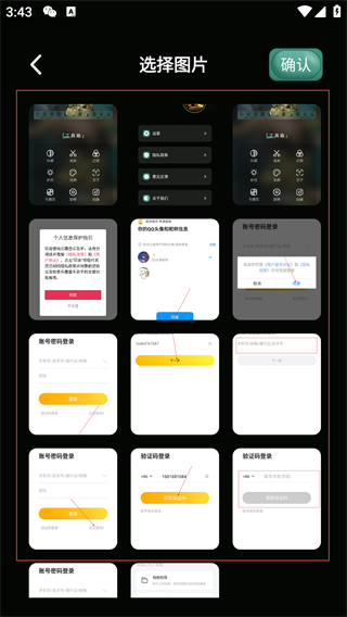 2、在“选择图片”界面,选中需要编辑的目标图片,点击【确认】进入编辑流程。